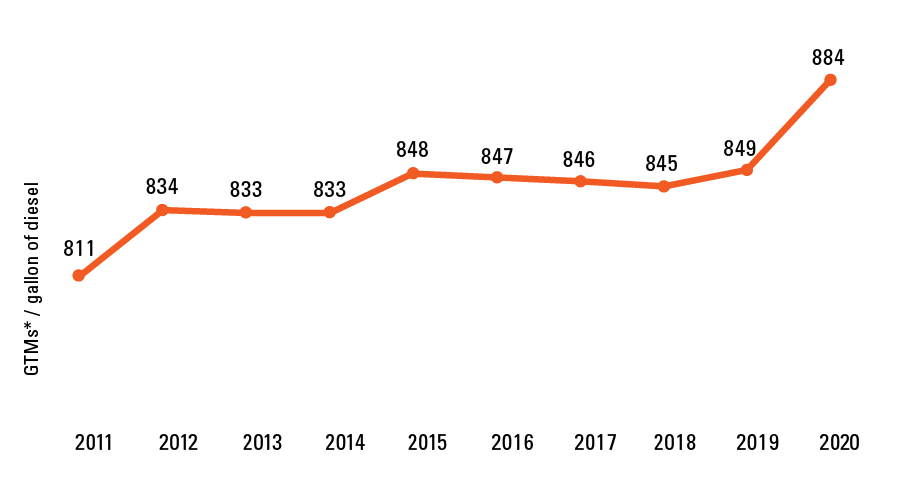 Over the last decade, BNSF has upgraded the majority of our locomotive fleet to more energy-efficient technologies. This helps us increase fuel efficiency and decrease emissions. Improvements in operations and maintenance practices also contribute to enhanced fuel-efficiency.