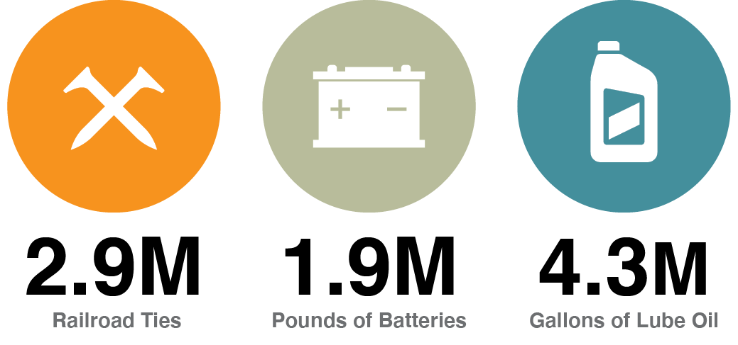 Recycling efforts further reduce BNSF’s environmental impact. Materials recycled in 2020 included approximately: