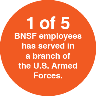 BNSF can boast more than 7,000 employees who are either military veterans or are still serving as members of the Guard or Reserves. Supporting reservists is a longstanding tradition, with time off for training and deployment readily available. Our BRAVE (Business Resource and Veterans Engagement) group helps veterans, reservists and first responders engage with communities, build leadership skills and receive career development. Recent recognition includes receiving the Military-Friendly Award.