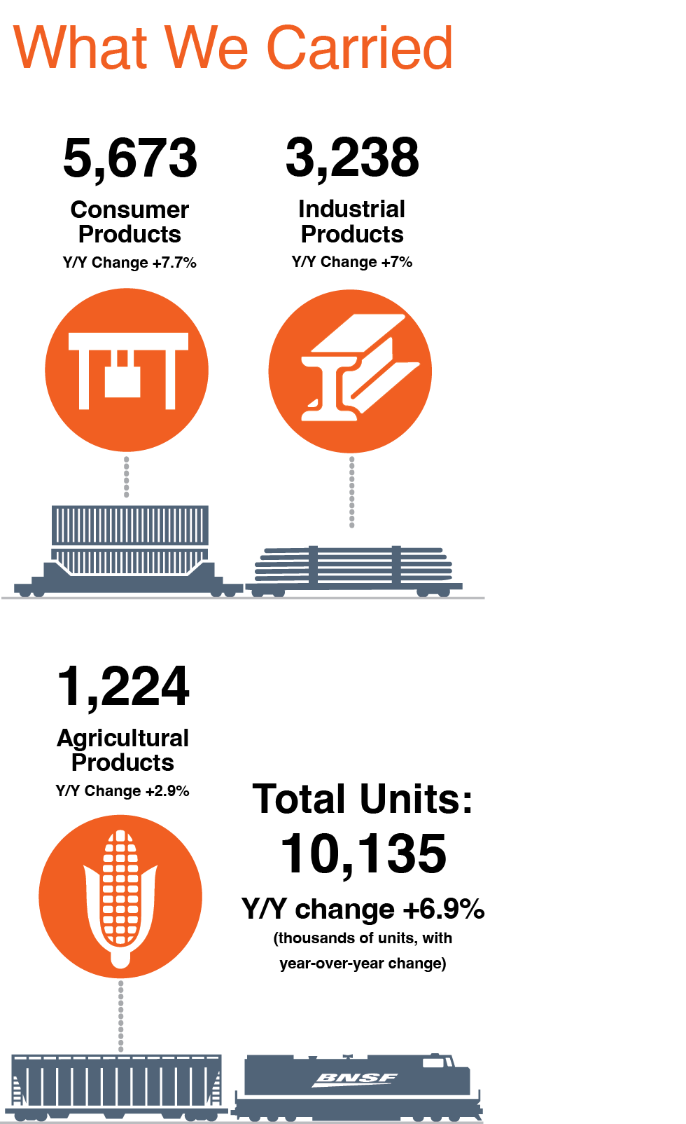 To better meet customer demand, BNSF is engaged in multi-year intermodal facility expansion projects in North Texas (Alliance) and Chicago (Cicero). We are also undertaking initiatives to improve intermodal facility efficiency in Southern California (San Bernardino).