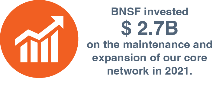 Every year, BNSF invests billions of dollars to maintain our core network and related assets and to expand our capacity to handle our customers’ demand for increased volumes.